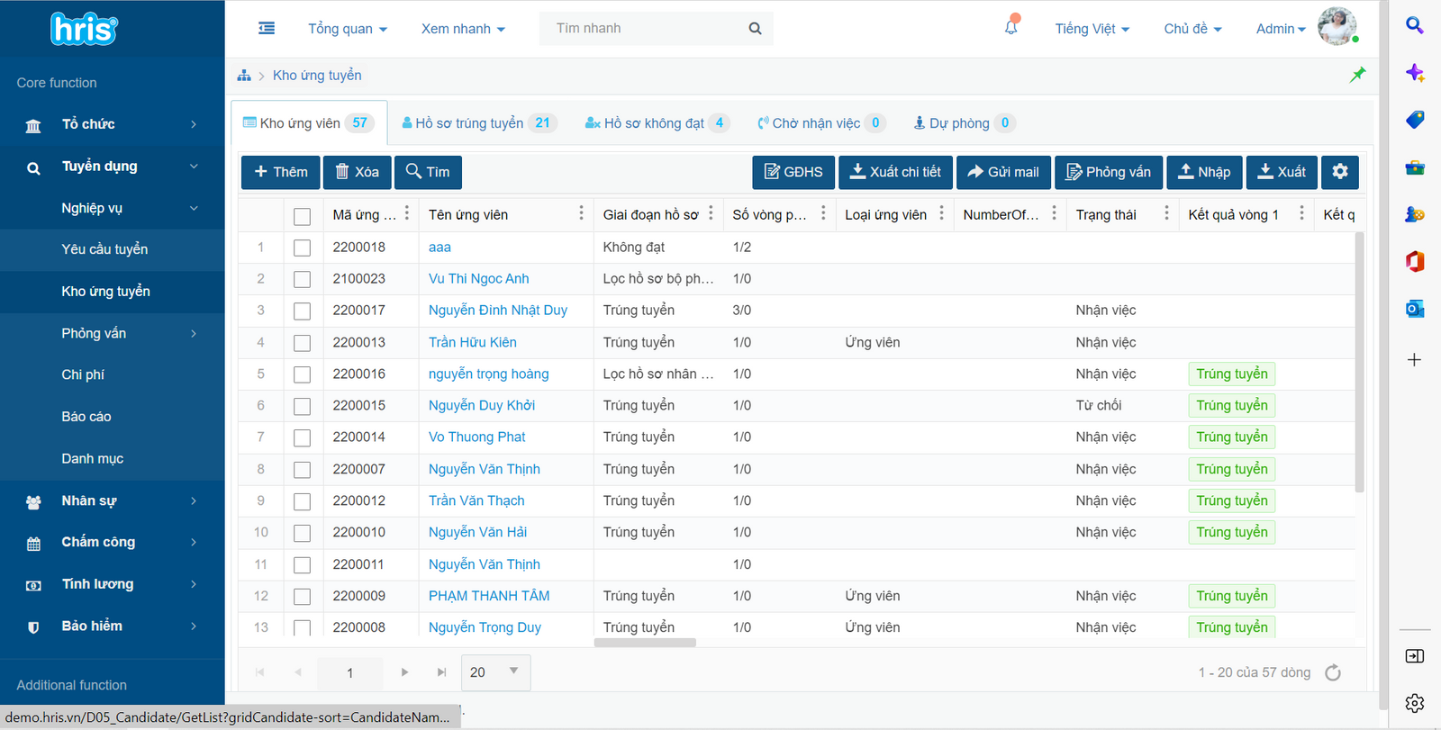 - Nhập hồ sơ, thông tin ứng viên với số lượng lớn và chính xác